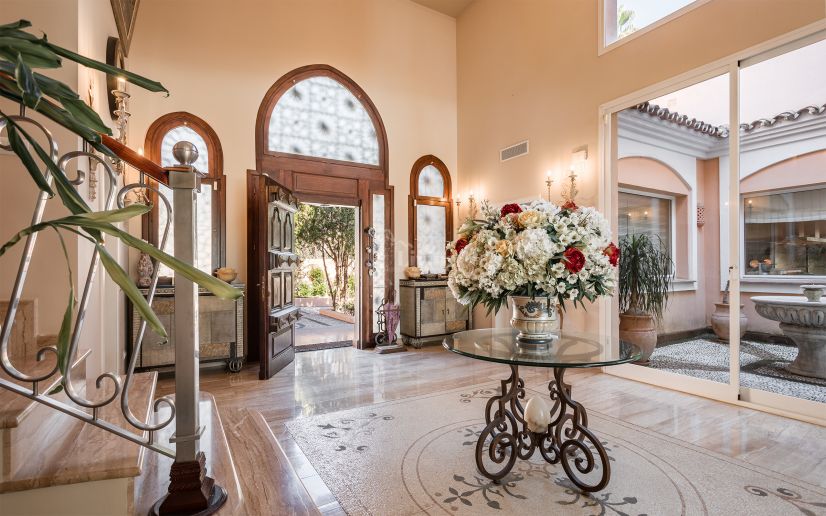 Enclavada a lo largo de la prístina costa de la Nueva Milla de Oro, esta impresionante villa en primera línea de playa personifica la vida de lujo en su máxima expresión. Con un total de 8 dormitorios, 10 cuartos de baño y un apartamento independiente para invitados, esta amplia propiedad ofrece un confort y una sofisticación incomparables.